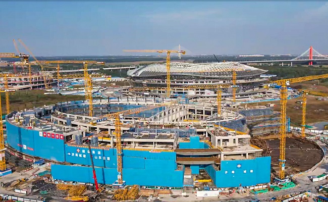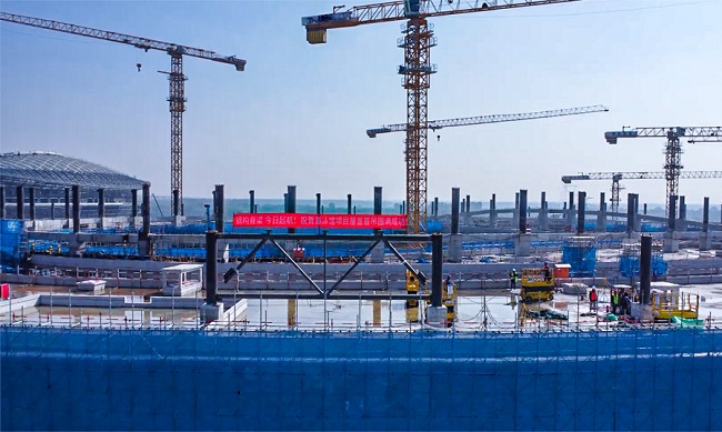目前,項目總體進展順利,主體結構均已按計劃節(jié)點完成,在今年6月實現(xiàn)了全面封頂。項目正進行室內的二次結構砌筑,穿插機電專業(yè)的管線預埋工作。并推進鋼結構屋蓋的吊裝,計劃元旦前完成全部外圍鋼結構屋蓋的吊裝工作。